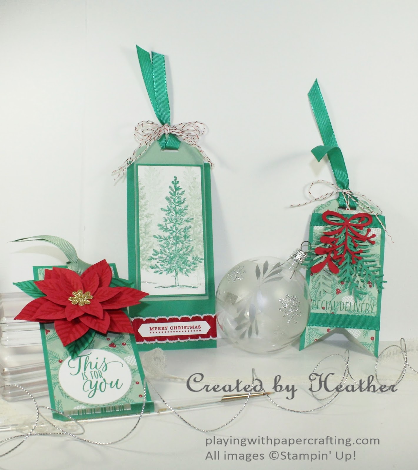 What a wonderful trio of tags Heather - so much detail and dimension with the poinsettia and pines and they are perfect for a special finishing touch to your present wrapping. Who wouldn't want to receive a parcel finished with one of these?! Thanks for joining in my colour challenge over at The Paper Players this week!